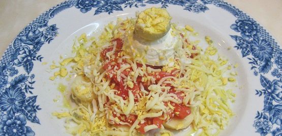 INGREDIENTES: 3 tomates 3 patatas Orégano fresco y albahaca Quesos: curado, semi y cremas Aceite de oliva, sal y pimienta 1 huevo duro Atún ELABORACIÓN: ¿Quieres preparar esta exquisita receta? Dale al play y escucha el archivo de audio, te damos ideas y algunos trucos para su preparación. Podrías disfrutar de esta deliciosa ensalada en…